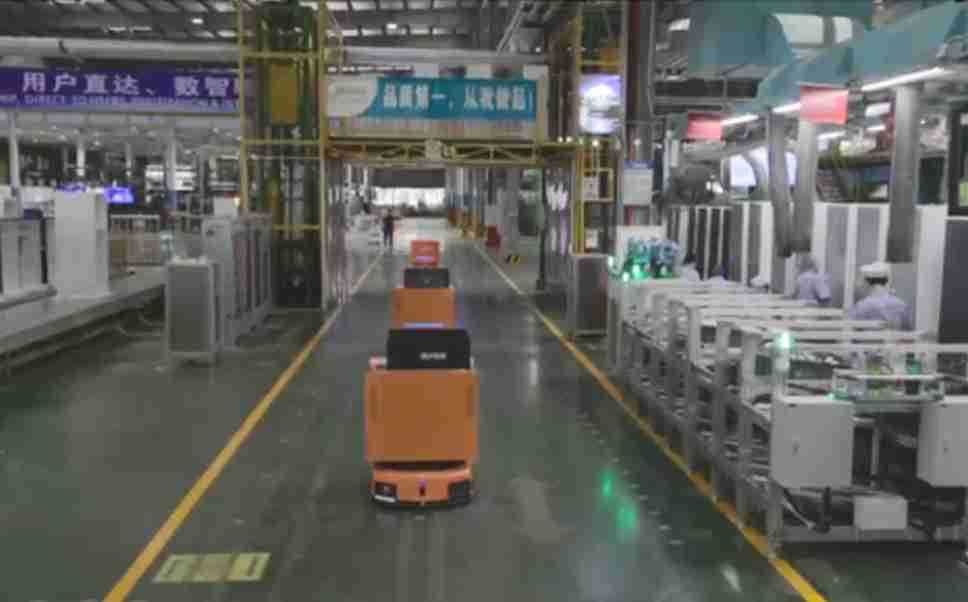 为车载冰箱物流配送打造的智能解决方案,,,包含产中物流通过潜伏举升AMR搬运至线边,,产后成品物流智能仓储,,流程包含产中物流智能齐套入库,,,,线边安灯叫料AMR智能配送至线边,,,,成品入库、、、出库,,通过无人堆高车机器人,,,,智能仓储管理替代人工作业管理,,,实现更高存储、、、更高效率、、、更具柔性化的解决方案。。
